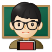 | কোডপয়েন্ট | U+1F468 1F3FB 200D 1F3EB |