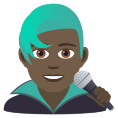 | কোডপয়েন্ট | U+1F468 1F3FF 200D 1F3A4 |