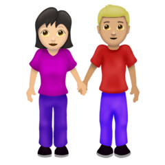 | অর্থ | মহিলা ও পুরুষ হাত ধরে দাড়িয়ে আছে: হালকা ত্বকের রঙ, মাঝারি-হালকা ত্বকের রঙ |