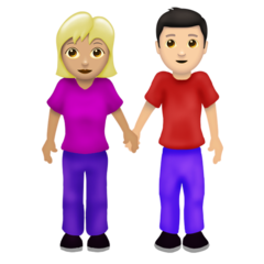 | অর্থ | মহিলা ও পুরুষ হাত ধরে দাড়িয়ে আছে: মাঝারি-হালকা ত্বকের রঙ, হালকা ত্বকের রঙ |