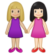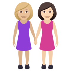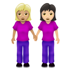 | অর্থ | দুজন মহিলা হাত ধরে দাড়িয়ে আছে: মাঝারি-হালকা ত্বকের রঙ, হালকা ত্বকের রঙ |