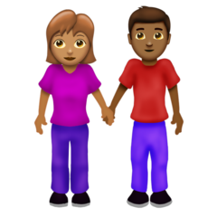 | অর্থ | মহিলা ও পুরুষ হাত ধরে দাড়িয়ে আছে: মাঝারি ত্বকের রঙ, মাঝারি-কালো ত্বকের রঙ |