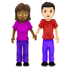 | অর্থ | মহিলা ও পুরুষ হাত ধরে দাড়িয়ে আছে: মাঝারি-কালো ত্বকের রঙ, হালকা ত্বকের রঙ |