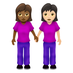 | অর্থ | দুজন মহিলা হাত ধরে দাড়িয়ে আছে: মাঝারি-কালো ত্বকের রঙ, হালকা ত্বকের রঙ |