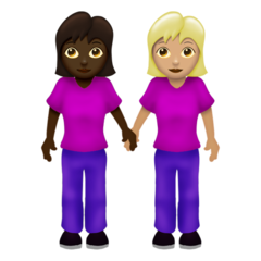 | অর্থ | দুজন মহিলা হাত ধরে দাড়িয়ে আছে: কালো ত্বকের রঙ, মাঝারি-হালকা ত্বকের রঙ |