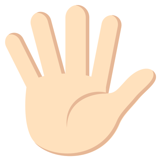 | অর্থ | আঙ্গুল প্রসারিত করে হাত তোলা: হালকা ত্বকের রঙ |