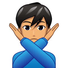 | কোডপয়েন্ট | U+1F645 1F3FD 200D 2642 |