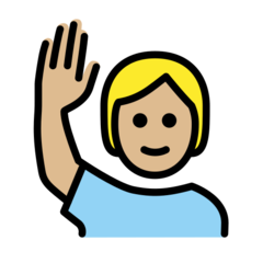 | অর্থ | সুখি ব্যক্তি যিনি হাত তুলেছেন: মাঝারি-হালকা ত্বকের রঙ |
