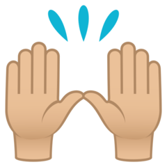 | অর্থ | ব্যক্তি হাত তুলে আছে: মাঝারি-হালকা ত্বকের রঙ |